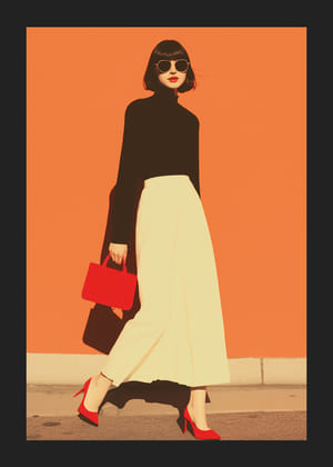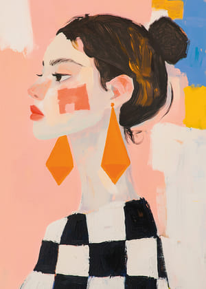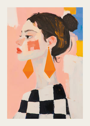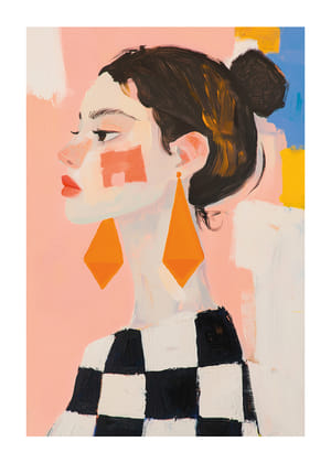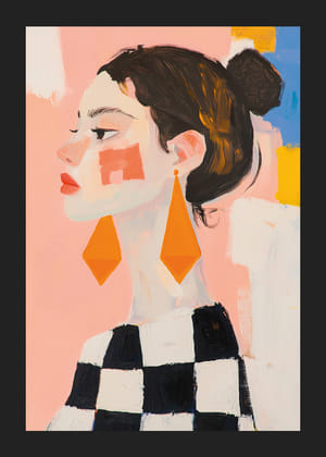 La pared de cuadros ofrece una paleta de colores donde cada cuadro armoniza en un conjunto moderno y elegante. Formas abstractas y retratos llaman la atención, mientras que los vibrantes tonos naranja y rosa se entrelazan, creando una sensación de movimiento y calma. Esta colección transforma la habitación en un lugar inspirador y lleno de energía.