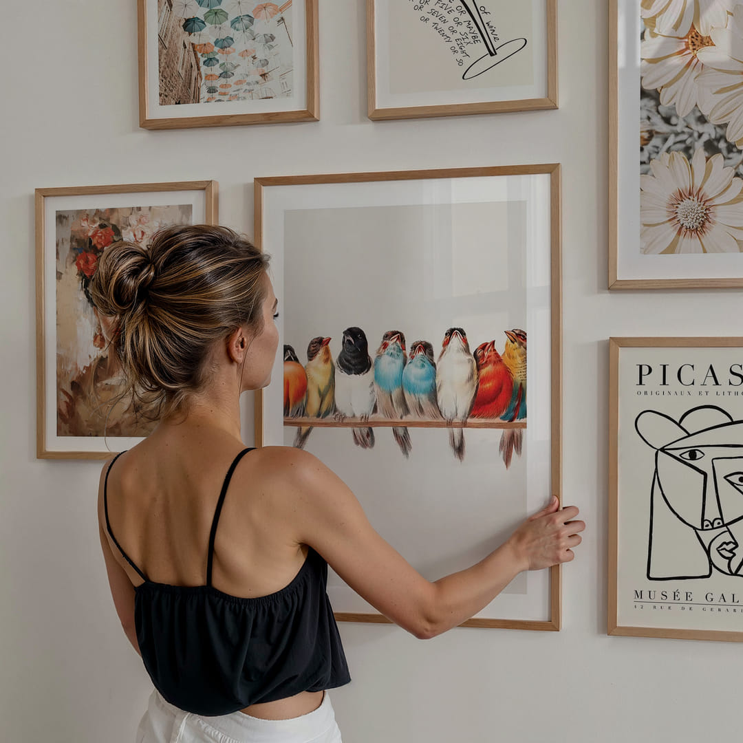 Esta pared artística llama la atención con sus pósteres cuidadosamente seleccionados que, en conjunto, crean un equilibrio perfecto de color y forma. Los motivos naturales se mezclan con líneas abstractas de Picasso, ofreciendo una inmersión artística tanto en la realidad como en la imaginación. Los colores fluyen con fluidez de un póster a otro, transformando cualquier habitación en un ambiente tranquilo e inspirador.
