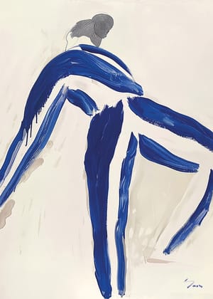 Con una inmediata sensación de movimiento, estos dos carteles capturan la elegancia humana con fuertes pinceladas azules sobre un fondo claro. Su expresión dinámica resalta la sensación de estilo moderno y libertad artística. Estos carteles confieren a la sala una atmósfera sofisticada, donde el flujo creativo invita a la reflexión y al diálogo entre huéspedes y residentes.