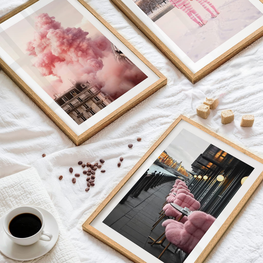 Esta pared artística, con sus suaves tonos rosa de piezas parisinas, cautiva la vista y el alma con una atmósfera armoniosa y de ensueño. Estos pósteres se complementan entre sí gracias a sus delicados colores y líneas limpias, creando una elegante unidad. Actúan como un centro de calma e inspiración, convirtiendo cualquier habitación en un oasis sofisticado y acogedor.