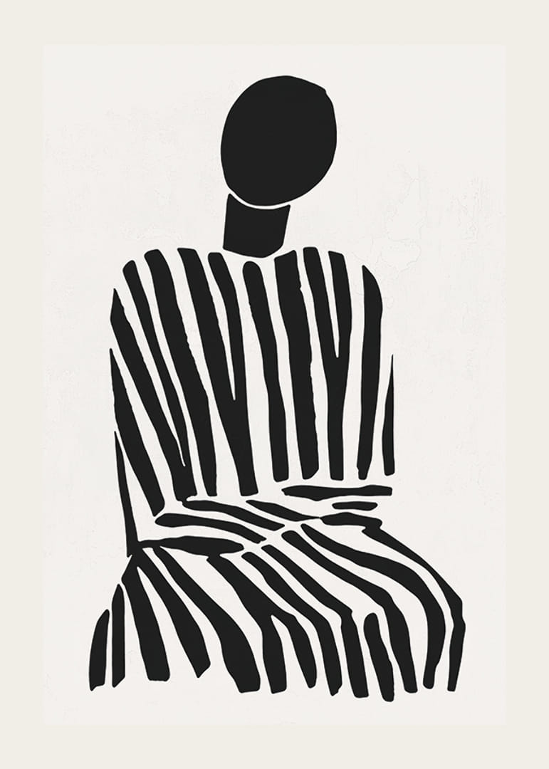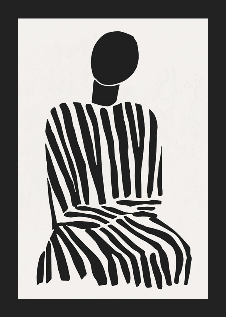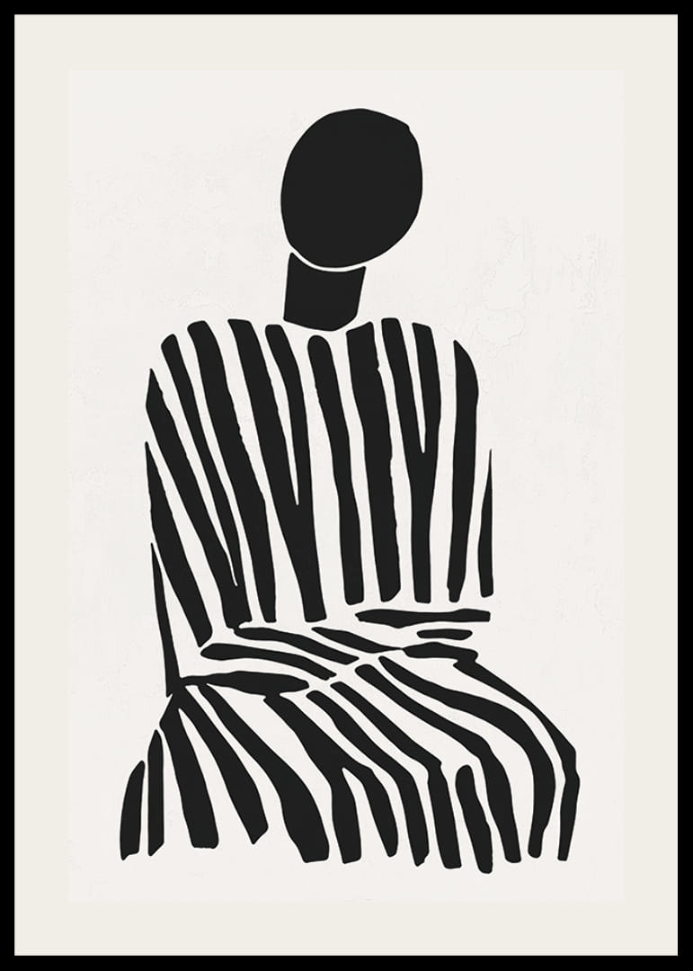 El juego del blanco y el negro en este cartel crea una sensación profunda y meditativa. La silueta abstracta expresa tanto simplicidad como misterio, invitando al espectador a un momento de quietud y reflexión.