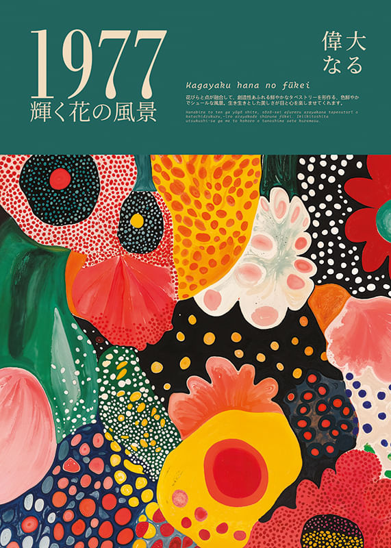 Póster Japandi inspirado en la artista japonesa Yayoi Kusama. Este cartel llama la atención con una explosión caleidoscópica de patrones florales, donde cada color y forma bailan en una sinfonía armoniosa de vitalidad. Con una estética de inspiración retro, transmite una sensación de nostalgia mezclada con sofisticación moderna.