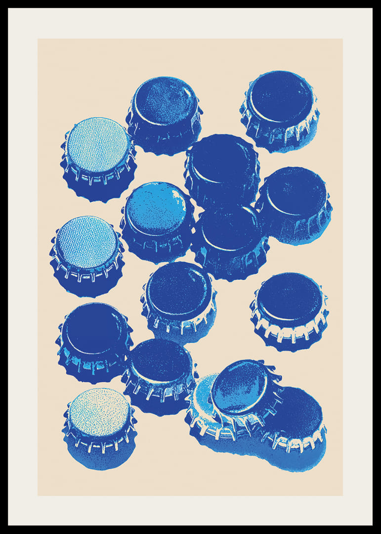 Este póster llama la atención con sus chapas azules de un impactante estilo pop art. Con una paleta de colores vibrantes y formas distintivas, cada chapa se convierte en una obra de arte que, en conjunto, crea una sensación de retro y modernidad. El póster realza la habitación con su diseño único y es perfecto para añadir un toque vibrante y artístico a cualquier espacio. Una colorida armonía de simplicidad y estilo.