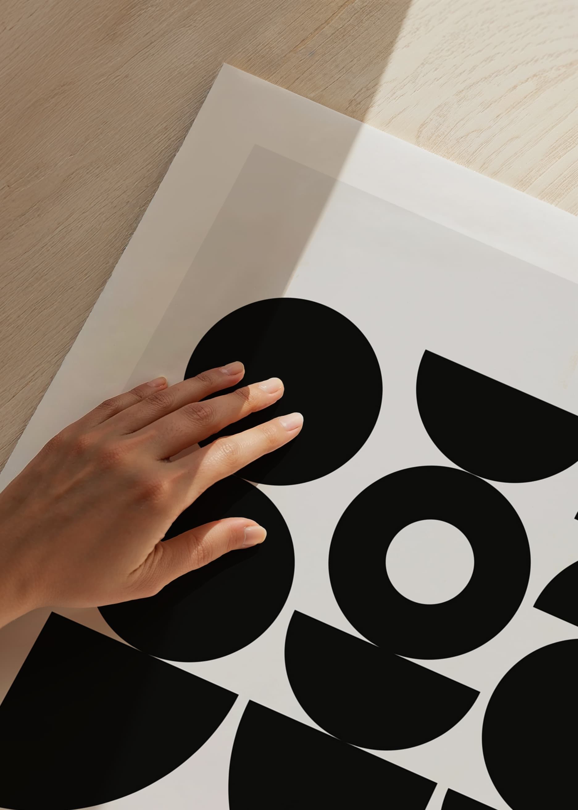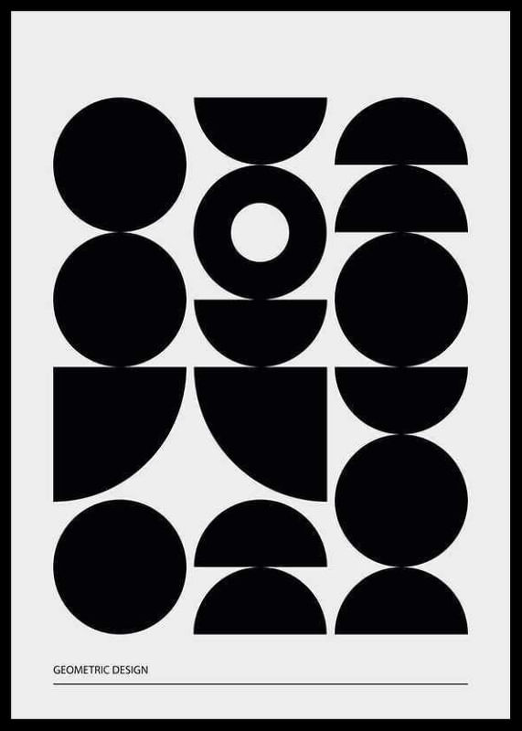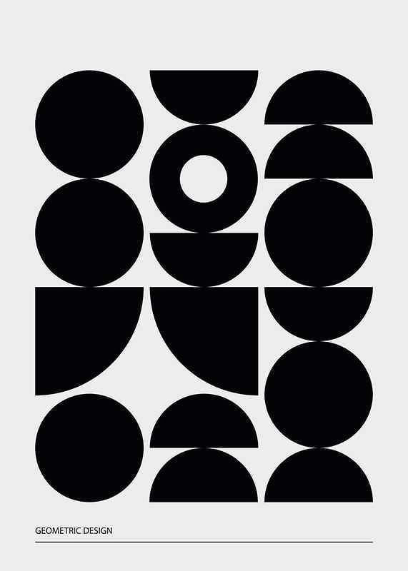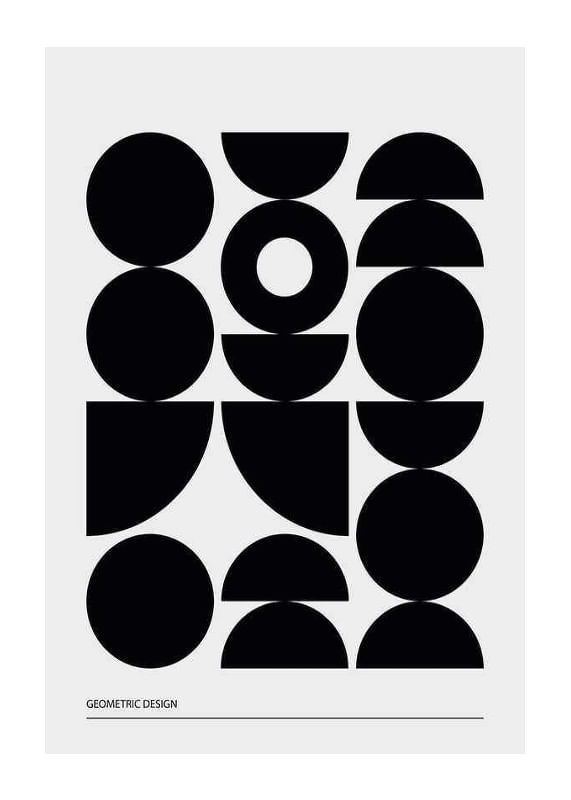 Póster de la categoría gráfico. Este póster tiene objetos geométricos en negro sobre un fondo gris claro.