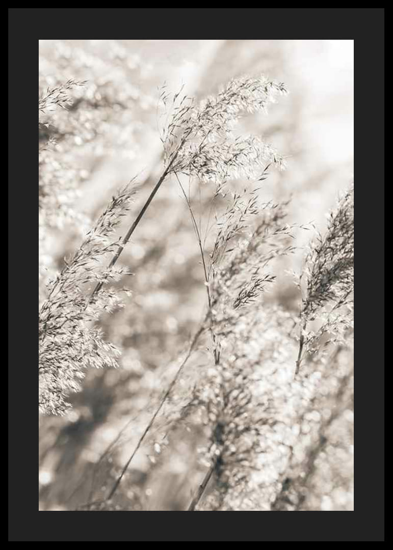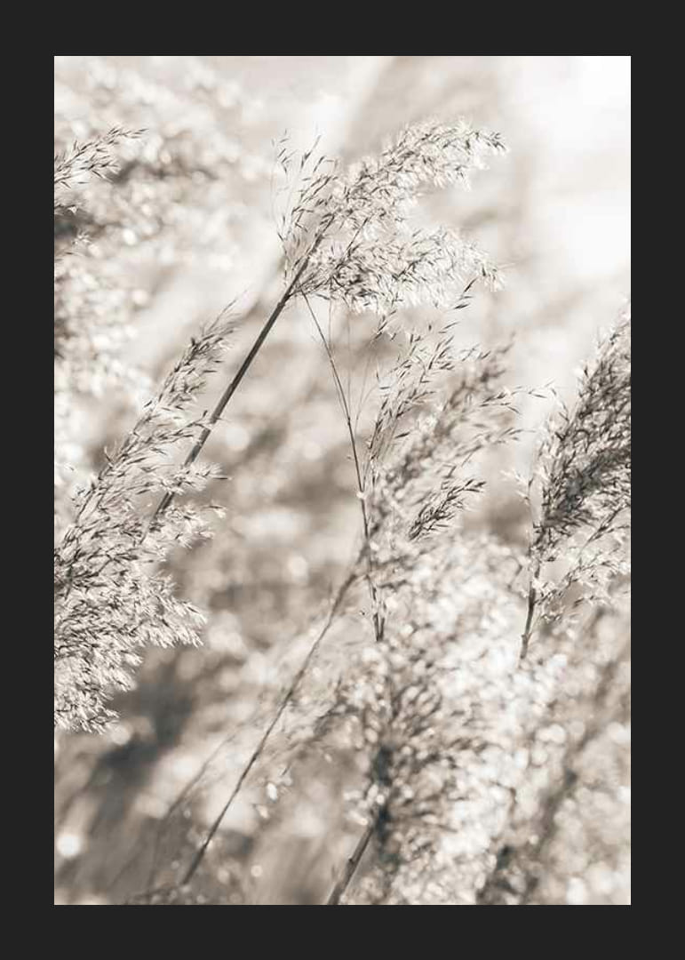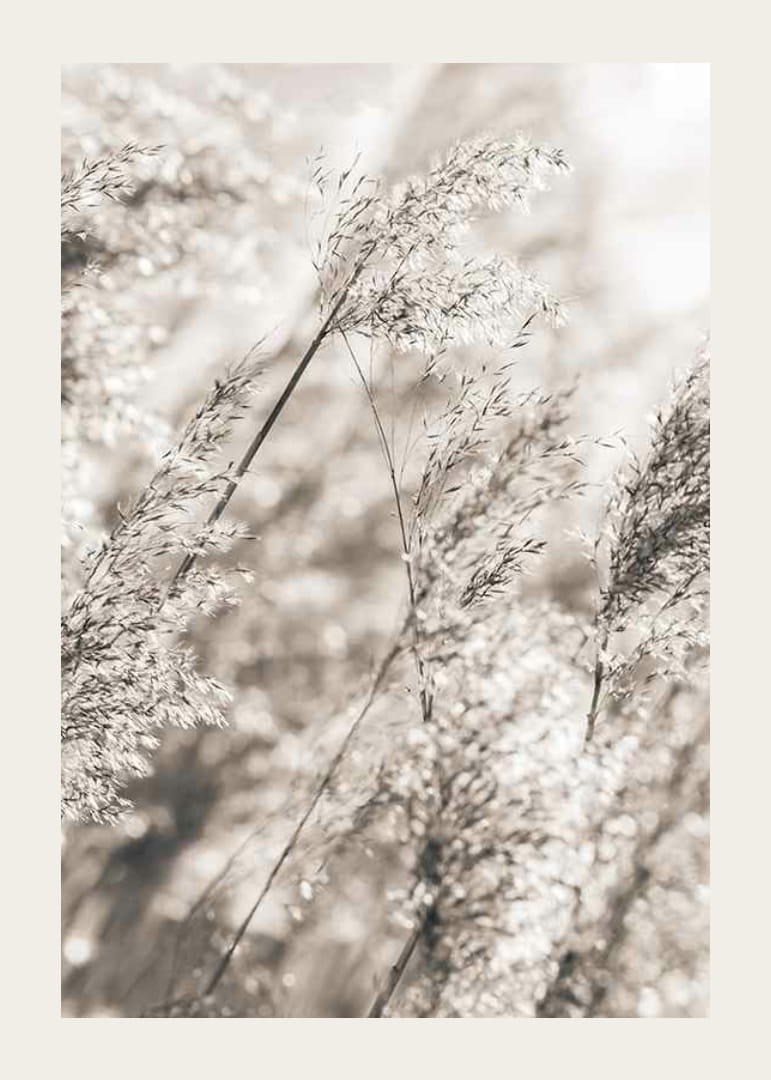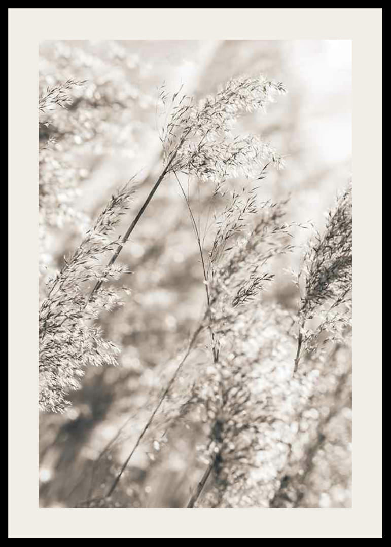 La hierba seca y fina se balancea sobre un fondo claro y difuminado en suaves tonos beige y marrón. La composición natural y los colores sobrios crean una expresión sutil y serena que encaja a la perfección con los tonos terrosos del otoño. Este póster será un complemento discreto tanto para la sala de estar como para el dormitorio, y queda perfecto en una pared con cuadros.
