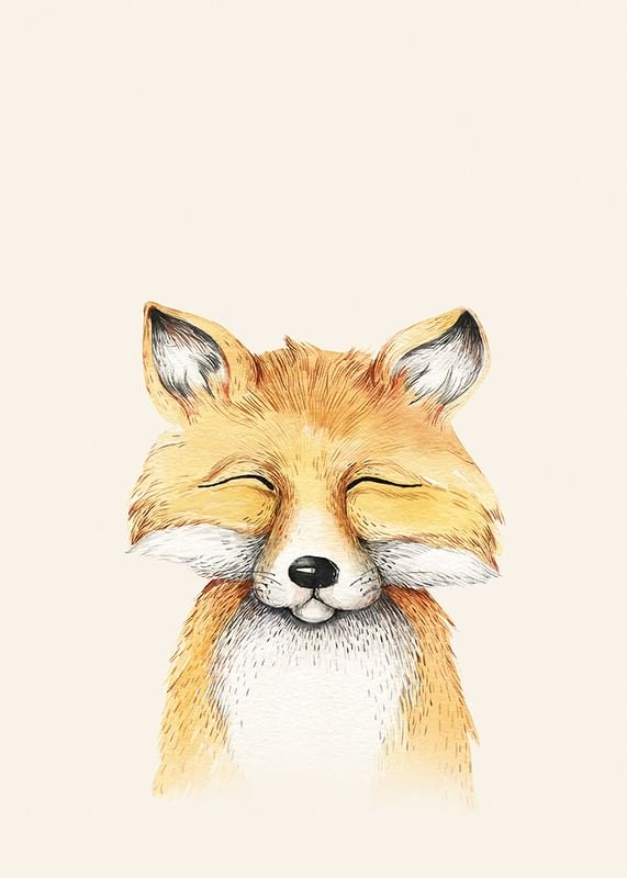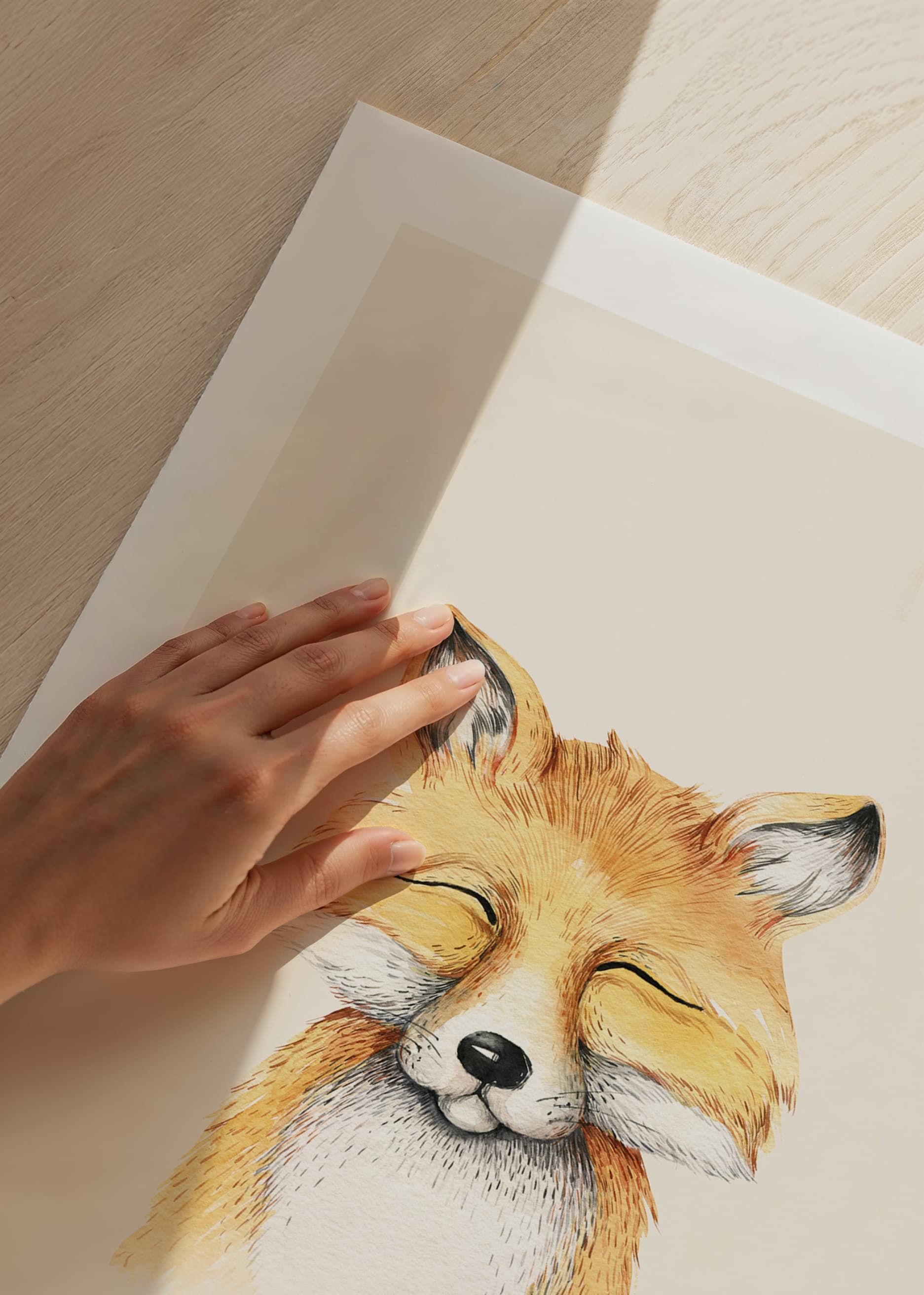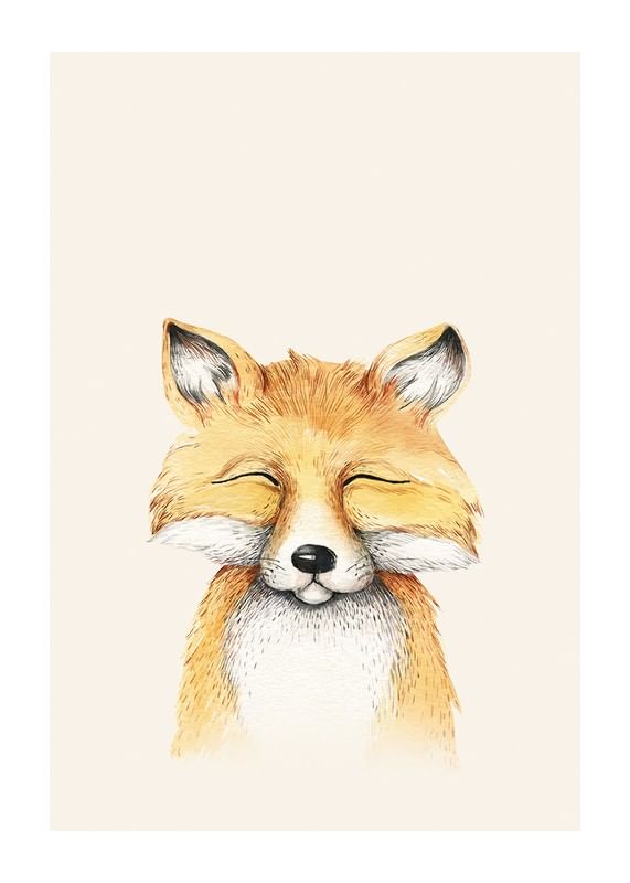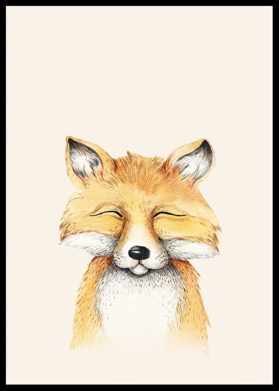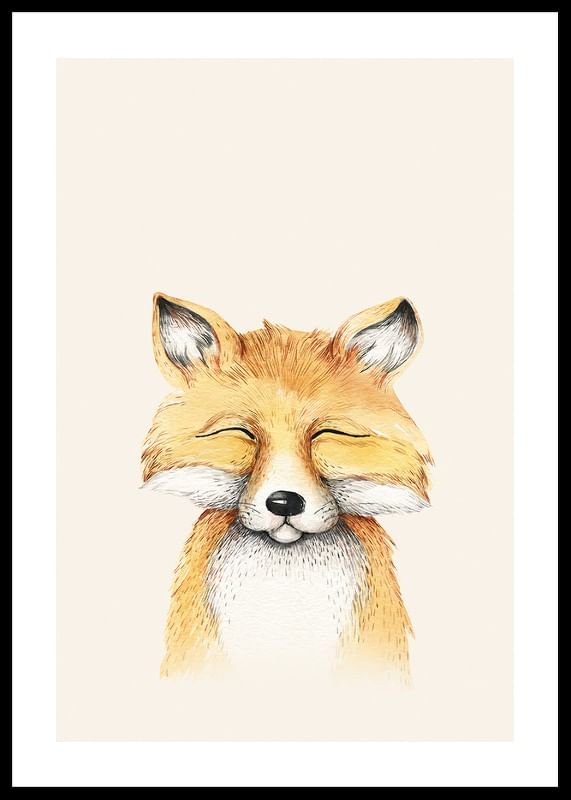 El motivo consiste en un zorro de dibujos animados con suaves tonos naranja y blanco, ojos cerrados y expresión relajada. El fondo de color claro y sólido crea una impresión nítida que lo convierte en el centro de atención. Elegante y divertido, este póster es perfecto para habitaciones infantiles, creando un ambiente armonioso y acogedor.