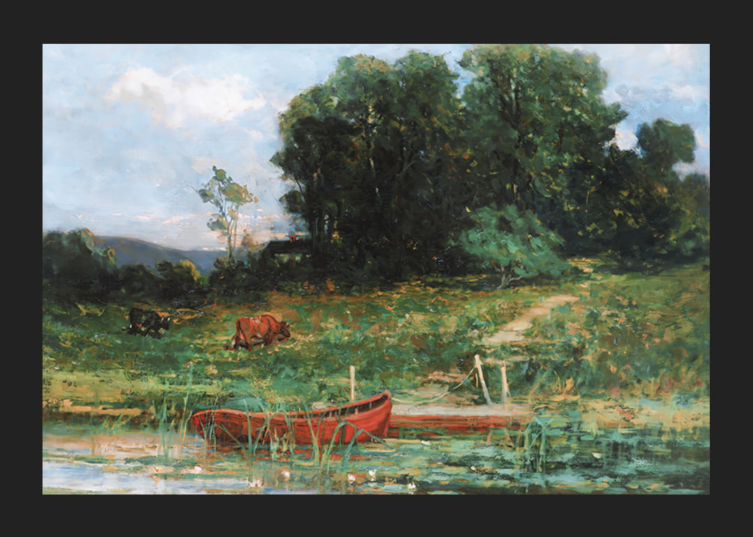 Póster con el cuadro "The Farm Landing" del artista estadounidense Edward Mitchell Bannister del año 1892.