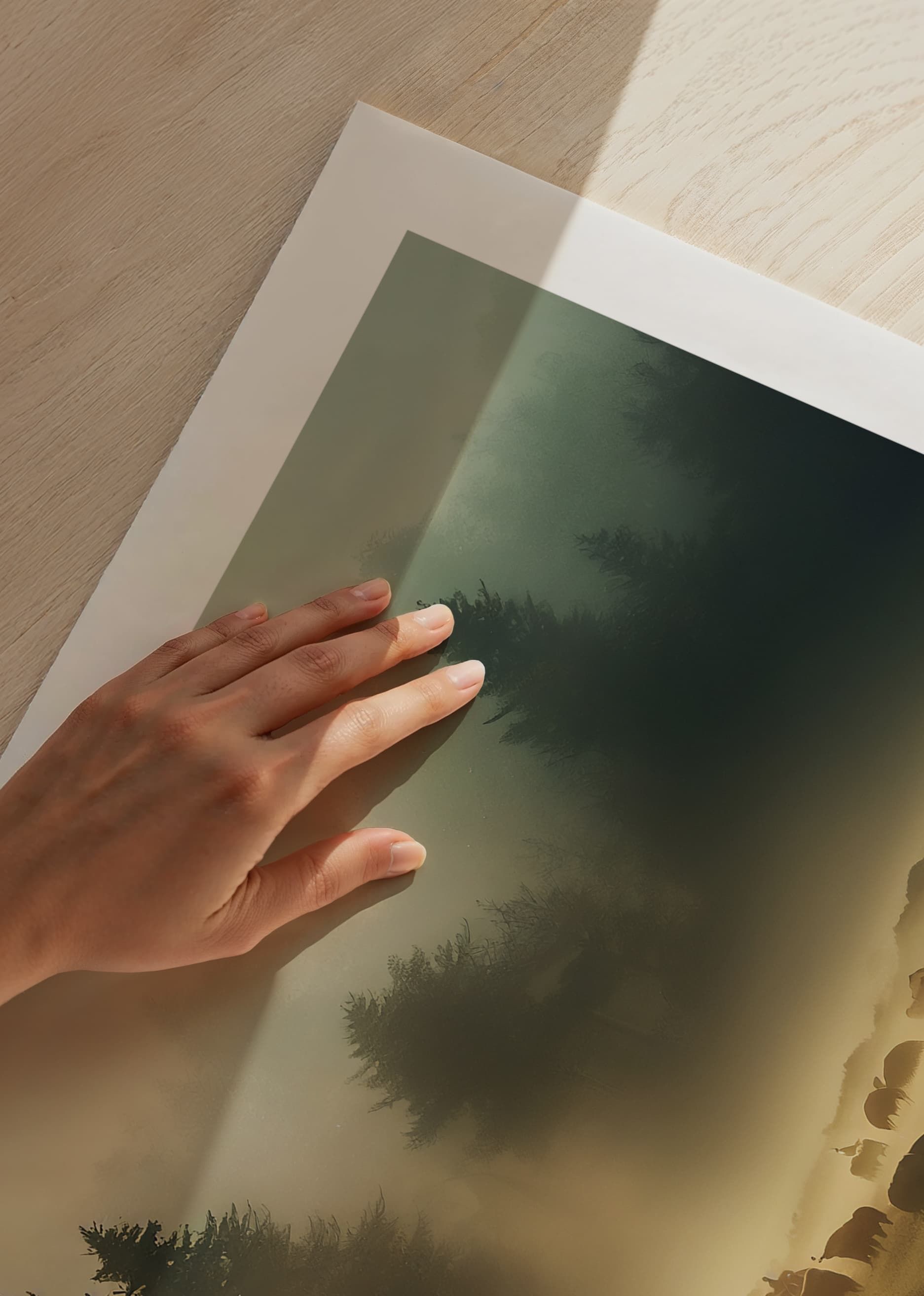 Imprimimos nuestros pósteres, láminas decorativas y cuadros de arte en papel mate de 200 g de calidad excelente de la fábrica de papel francesa Clairefontaine. El papel está certificado por el medio ambiente FSC y la producción lleva la etiqueta Nordic Swan/Ecolabel de la UE.