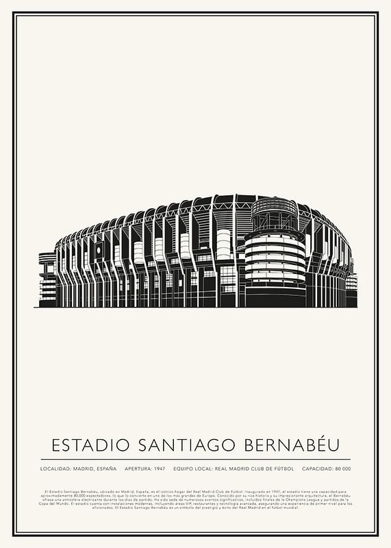 El Estadio Santiago Bernabéu, ubicado en Madrid, España, es el icónico hogar del Real Madrid Club de Fútbol. Inaugurado en 1947, el estadio tiene una capacidad para aproximadamente 80,000 espectadores, lo que lo convierte en uno de los más grandes de Europa. Conocido por su rica historia y su impresionante arquitectura, el Bernabéu ofrece una atmósfera electrizante durante los días de partido. Ha sido sede de numerosos eventos significativos, incluidos finales de la Champions League y partidos de la Copa del Mundo. El estadio cuenta con instalaciones modernas, incluyendo áreas VIP, restaurantes y tecnología avanzada, asegurando una experiencia de primer nivel para los aficionados. El Estadio Santiago Bernabéu es un símbolo del prestigio y éxito del Real Madrid en el fútbol mundial.