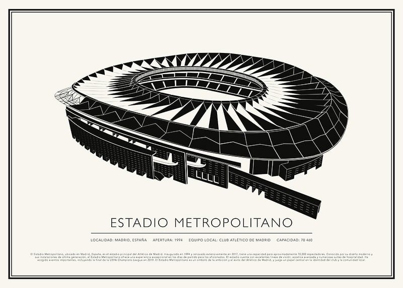 Estadio Metropolitano Vintage Sketch 02 ES Póster