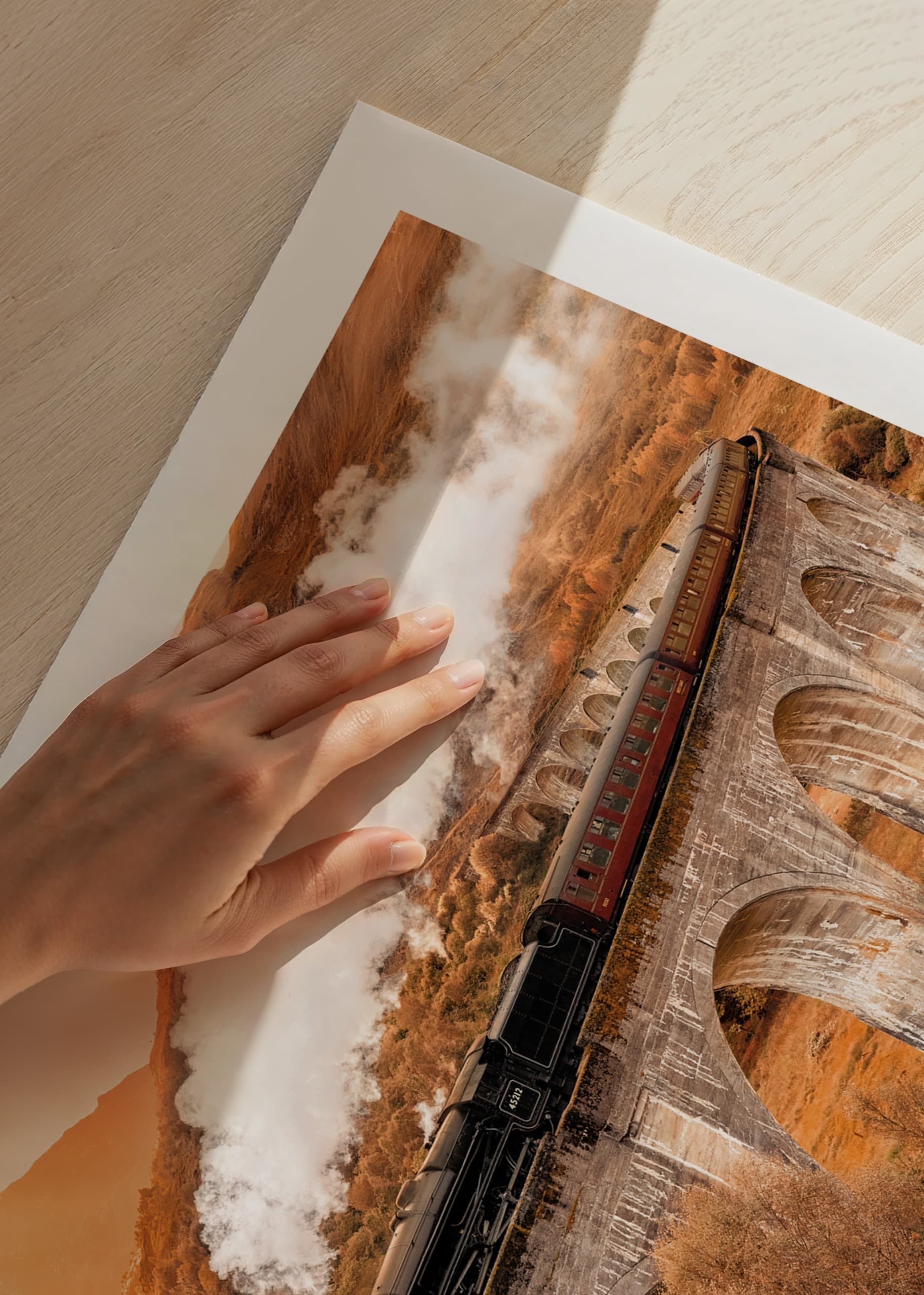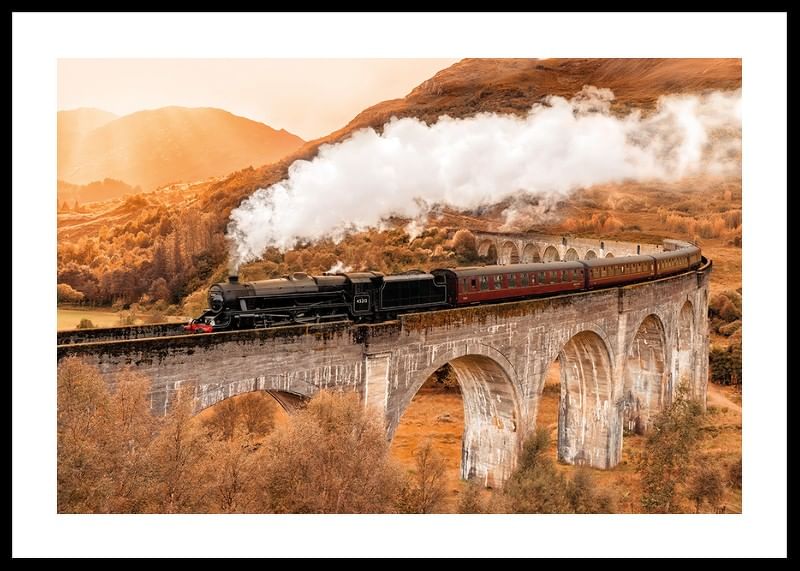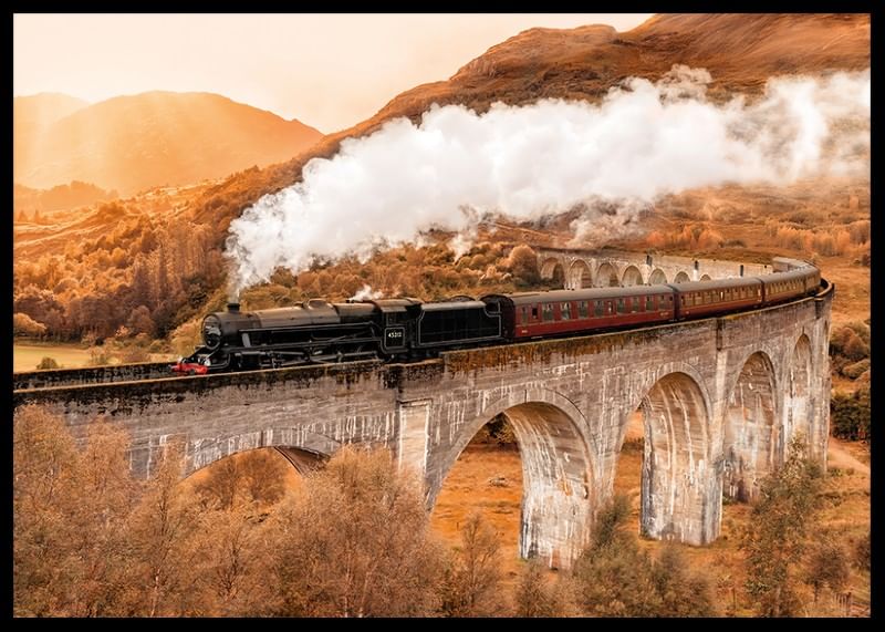 Un póster nostálgico y cautivador que te transporta a un viaje a través del tiempo y la naturaleza. El motivo muestra un clásico tren de vapor cruzando majestuosamente un viaducto, rodeado de un colorido paisaje otoñal. El humo blanco que se eleva hacia el cielo y las hojas doradas de la naturaleza crean una sensación de aventura y tranquilidad. Perfecto para los amantes de los trenes, los viajes, la naturaleza y el estilo vintage. Encaja a la perfección en el salón, el estudio o el pasillo. Forma parte de nuestra colección de pósteres que evocan emociones y cuentan historias.
