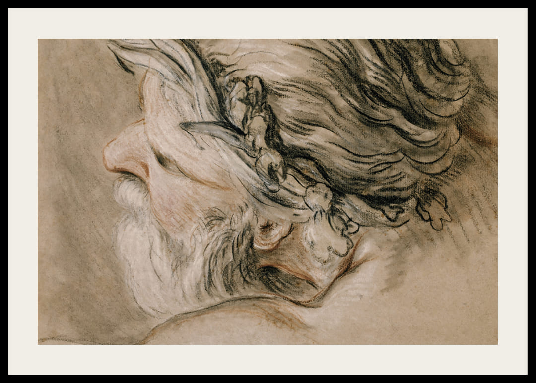 Póster de la categoría artistas famosos con el cuadro "Cabeza de dios del mar" del artista francés Charles Joseph Natoire del año 1730-1740.
