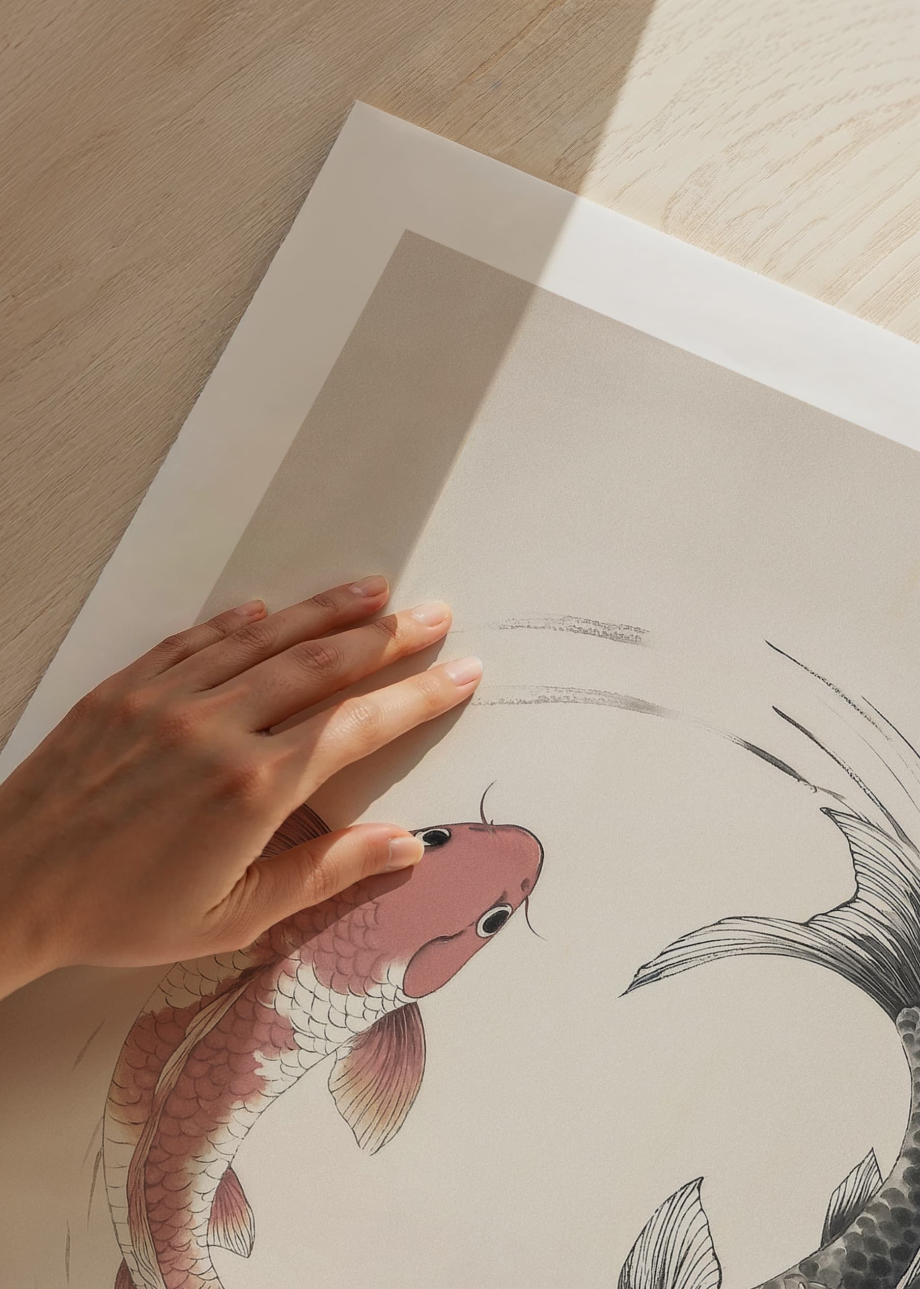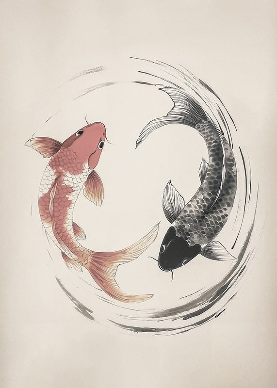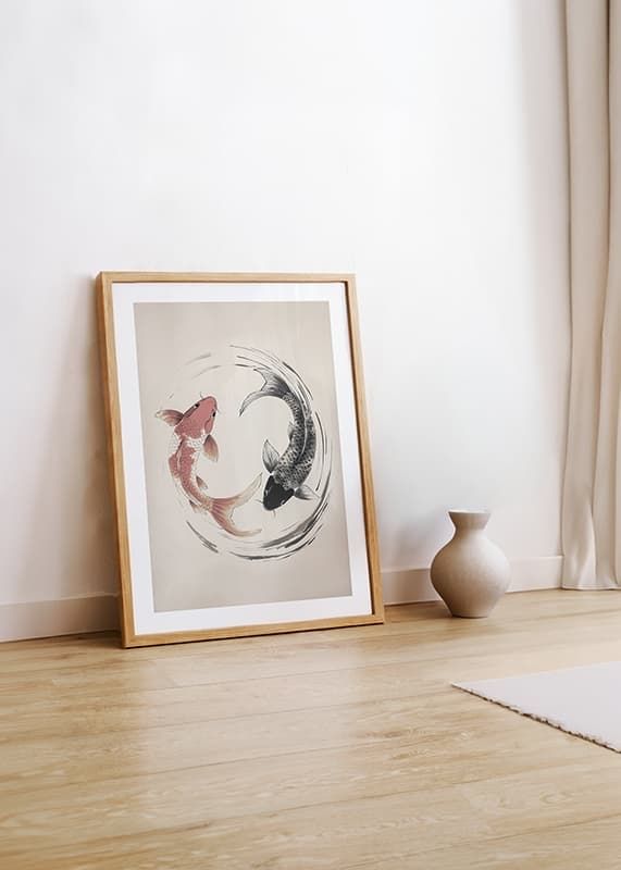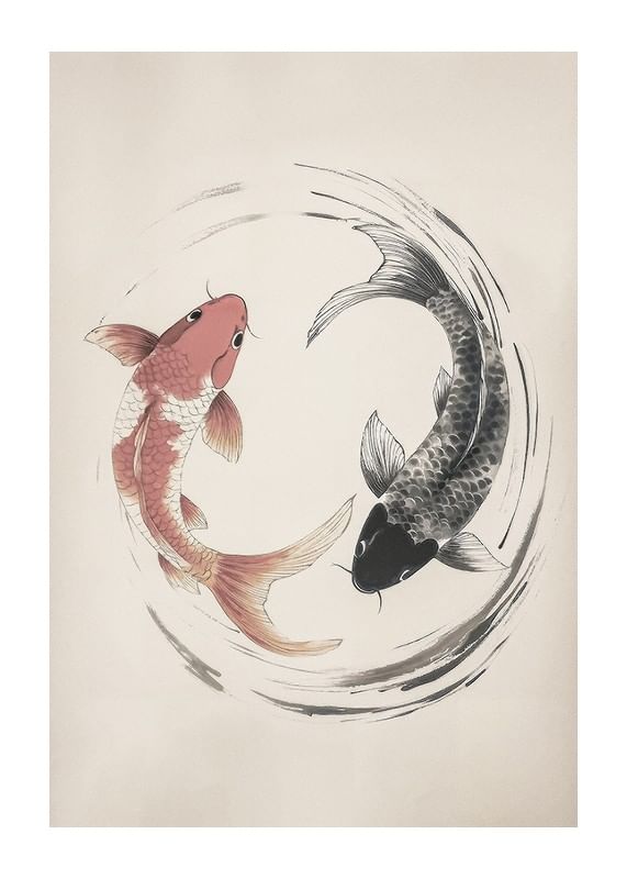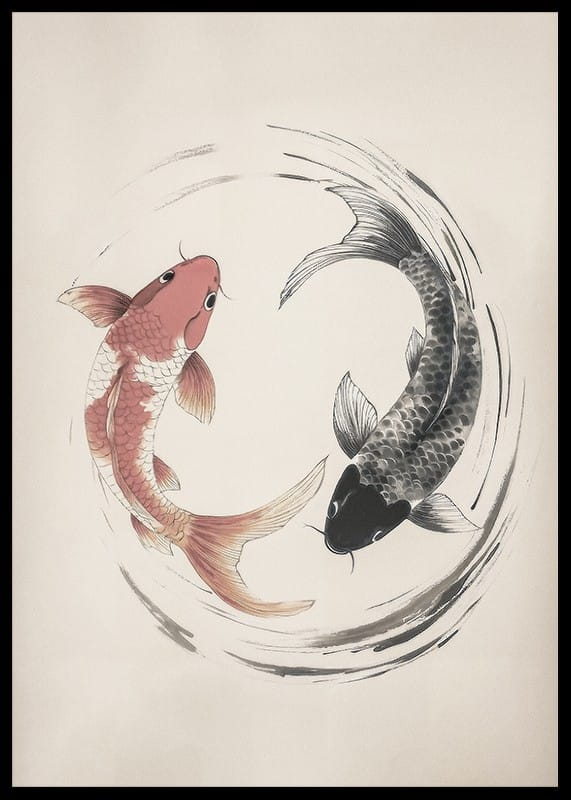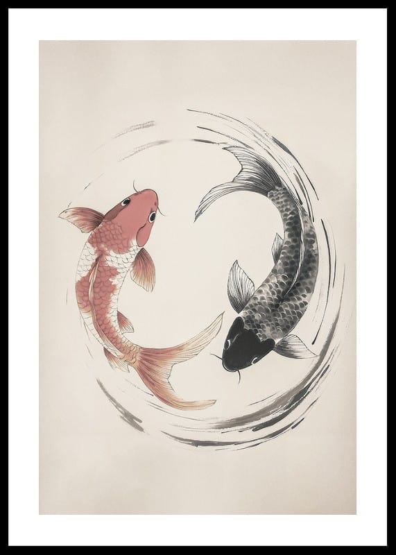 Traiga una sensación de armonía y equilibrio a su hogar con este elegante póster que representa dos peces koi en un diseño atemporal del yin y el yang. Con sus líneas suaves y colores sutiles, la imagen irradia calma y belleza, perfecta para crear una atmósfera relajante en cualquier estancia. Un símbolo de éxito y felicidad.